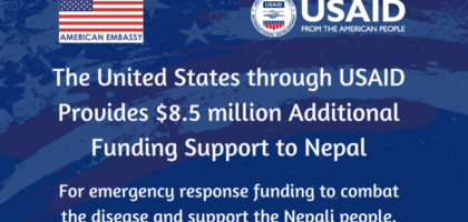 अमेरिका सरकारले आफ्नो दातृ निकाय युएसएआईडी मार्फत कोरोनाको महामारी विरुद्ध लड्न नेपाल सरकारलाई ८५ लाख डलरको आर्थिक सहयोग प्रदान गर्ने घोषणा...