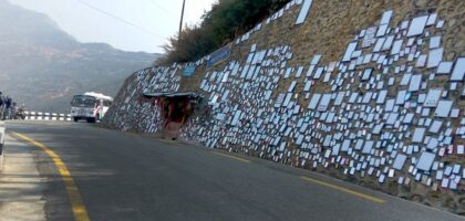 साँघुरो सडक, त्यही सडकको भित्तामा सेती देवीको मन्दिर । मन्दिर वरपर हजारौंको सङ्ख्यामा ऐना । बीपी राजमार्ग हुँदै यात्रा गर्ने जोकोही...