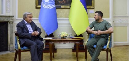 राष्ट्रसङ्घीय महासचिव एन्टोनियो गुटरेस र युक्रेनका राष्ट्रपति भोलोदमिर जेलिन्स्किीका बीचमा बुधबार युक्रेनको किभमा भएको भेटवार्ताका क्रममा ‘ब्ल्याक सी’ हुँदै गरी आएको...