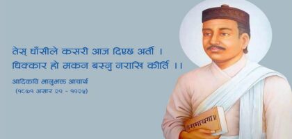 नेपाली साहित्यका आदिकवि भानुभक्त आचार्यको २०८औँ जन्मजयन्ती आज देश तथा विदेशका विभिन्न स्थानमा समेत विविध कार्यक्रमको आयोजना गरी मनाइँदैछ । सरल...