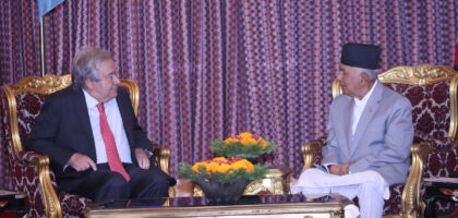 नेपाल भ्रमणमा रहनुभएका संयुक्त राष्ट्रसंघका महासचिव एन्टोनियो गुटेरेसले आज राष्ट्रपति रामचन्द्र पौडेलसँग भेटवार्ता गर्नुभएको छ । राष्ट्रपति पौडेल र गुटेरेसबीच राष्ट्रपति...