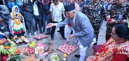 कोजाग्रत पूर्णिमाको अवसरमा आज राष्ट्रपति रामचन्द्र पौडेलले भक्तपुरस्थित नवदुर्गा मन्दिरमा नवदुर्गा भवानीको पूजाअर्चना गरी टीका, प्रसाद ग्रहण गर्नुभएको छ । प्रथम...