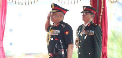 भारतीय सेनाध्यक्ष जनरल मनोज पाण्डेले नेपाली सेनाको एक टुकडीद्वारा प्रस्तुत सम्मान गारत निरीक्षण गर्नुभएको छ । प्रधानसेनापति प्रभुराम शर्माको औपचारिक निमन्त्रणामा...