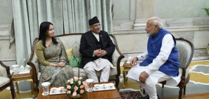 भारतको औपचारिक भ्रमणमा रहनुभएका प्रधानमन्त्री पुष्पकमल दाहाल ‘प्रचण्ड’ र उहाँका समकक्षी नरेन्द्र मोदीबीच भेटवार्ता भएको छ । आइतबार बेलुका भएको भेटमा...