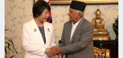 राष्ट्रपति रामचन्द्र पौडेलसँग नेपाल भ्रमणमा आउनुभएका जापानकी परराष्ट्रमन्त्री खामिखावा योकोले राष्ट्रपति भवन शीतल निवासमा शिष्टाचार भेट गर्नुभएको छ । शीतल निवासमा...