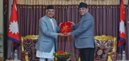 राष्ट्रपति रामचन्द्र पौडेलसमक्ष प्रधानमन्त्री एवं राष्ट्रिय सुरक्षा परिषद्का अध्यक्ष पुष्पकमल दाहालले सोमबार आर्थिक वर्ष २०७९/८० को सुरक्षा परिषद्को वार्षिक प्रतिवेदन पेस...