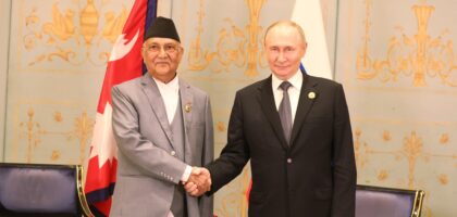 प्रधानमन्त्री केपी शर्मा ओली र रुसका राष्ट्रपति भ्लादिमिर पुटिनबीच भेटवार्ता भएको छ । चीन भ्रमणमा रहेका प्रधानमन्त्री ओलीले राष्ट्रपति पुटिनसँग सोमबार...