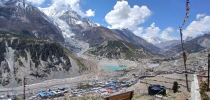मनाङ ङिस्याङ गाउँपालिका–६ मा अवस्थित मनाङ गाउँको पृष्ठभूमिमा गङ्गापूर्ण हिमाल, ग्लेसियर र गङ्गापूर्ण ताल । गाउँको नामबाट नै जिल्लाको नामकरण गरिएको...