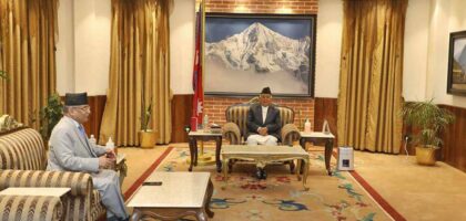 प्रधानमन्त्री पुष्पकमल दाहाल ‘प्रचण्ड’ले राष्ट्रपति रामचन्द्र पौडेलसँग भेट गर्नुभएको छ । भेटमा उहाँहरूबीच समसामयिक राजनीतिका विषयमा छलफल भएको राष्ट्रपति पौडेलका प्रेस...