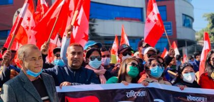 नेपाल कम्युनिस्ट पार्टी (नेकपा) प्रचण्ड–नेपाल पक्षले बुधबार काठमाडौंमा शक्ति प्रदर्शन गरेको छ । काठमाडौंको प्रदर्शनीमार्गस्थित सडकमा आयोजना गरिएको सभा अघि नेकपा...