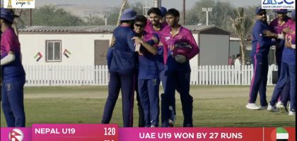 संयुक्त अरब इमिरेट्स (युएई) मा सम्पन्न एसिसी पुरुष यु–१९ प्रिमियर कप क्रिकेटको उपाधि जित्न नेपाल चुकेको छ । नेपाललाई २७ रनले...