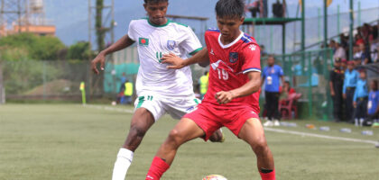 दक्षिण एसियाली फुटबल महासङ्घ (साफ) यु–२० च्याम्पियनपसिप फुटबल प्रतियोगिताको उपाधि भिडन्तमा आज नेपाल र बङ्गलादेशबीच प्रतिस्पर्धा हुने भएको छ । सातदोबाटोस्थित...