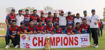 नेपालले पीएनजीसँग दुई खेलको एकदिवसीय सिरिजमा खेपेको हारको बदला लियो त्रिकोणात्मक टी–ट्वान्टी अन्तर्राष्ट्रिय क्रिकेट श्रृङ्खलाको उपाधि नेपालले जितेको छ । दीपेन्द्रसिंह...