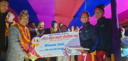 राष्ट्रिय महिला कबड्डी प्रतियोगिता २०७८ को उपाधि सुदूरपश्चिम प्रदेशले हात पारेको छ । धनुषाको बटेश्वर गाउँपालिकामा यही मङ्सिर २३ गतेदेखि आयोजित...