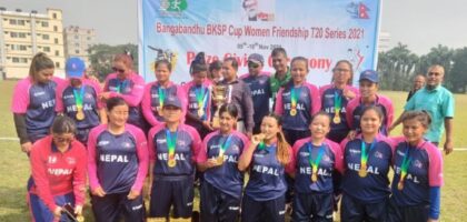 नेपालको राष्ट्रिय महिला क्रिकेट टिमले बंगबन्धु बीकेएसपी कप वुमन फ्रेन्डसिप टी–२० सिरिज जितेको छ । बुधवार बङ्गलादेशको बीकेएसपीको टिमलाई ७ विकेटले...