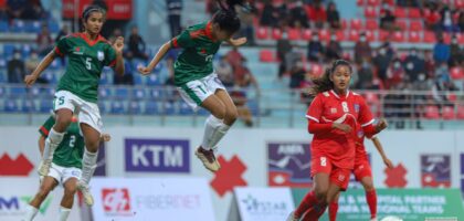 फरवार्ड सविता राना मगर र मिडफिल्डर प्रीति राईले डेब्यु गरेको खेलमै गोल गरेपछि नेपालले बङ्गलादेशसँगको पहिलो अन्तर्राष्ट्रिय मैत्रीपूर्ण फुटबल खेलमा जित हात...