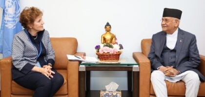 प्रधानमन्त्री केपी शर्मा ओलीसँग मिलेनियम च्यालेञ्ज कर्पोरेशन (एमसिसी) का कार्यकारी प्रमुख एलिस अल्ब्राइटले शिष्टाचार भेट गर्नुभएको छ । संयुक्त राष्ट्रसङ्घको ७९औँ...
